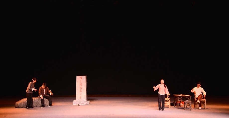 今晚舞台上不仅有对《麦克白》《生日晚会》这样的经典剧本的“新”演绎,更是有学生手中原创的剧本。由“自由人3.0”剧组带来的《四喜的碑》的剧本是经亨颐学院的张惠珺同学创作而成。该剧讲述了一个遥远的战争年代的故事。四喜的“战死”让其家人成为了“烈士家属”,并且因此获得了极大的利益。当全家人都沉浸在舒适的新生活中时,四喜却回来了。原来他并没有战死而是当了逃兵,所谓的“烈士”只是一个误会。但是此时他已经成了家庭的累赘甚至是毁灭者。在家人的逼迫下,走入绝境的四喜选择了自杀,继续了未完成的死亡。编剧用这样一个悲哀和荒谬编织的“圆满结局”揭穿了“生命属于生命者”这一伪命题。该剧获得了指导老师黄岳杰老师极高的赞誉,并且斩获了本届话剧节剧本大赛一等奖、最佳女演员、优秀男演员、最佳导演奖四个大奖,充分体现了大学生原创的力量!