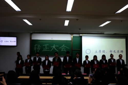 11月29日下午,色情网站 第七届团委、第十七届学生会干事转正仪式暨主席部长受聘仪式于恕园13-301召开。