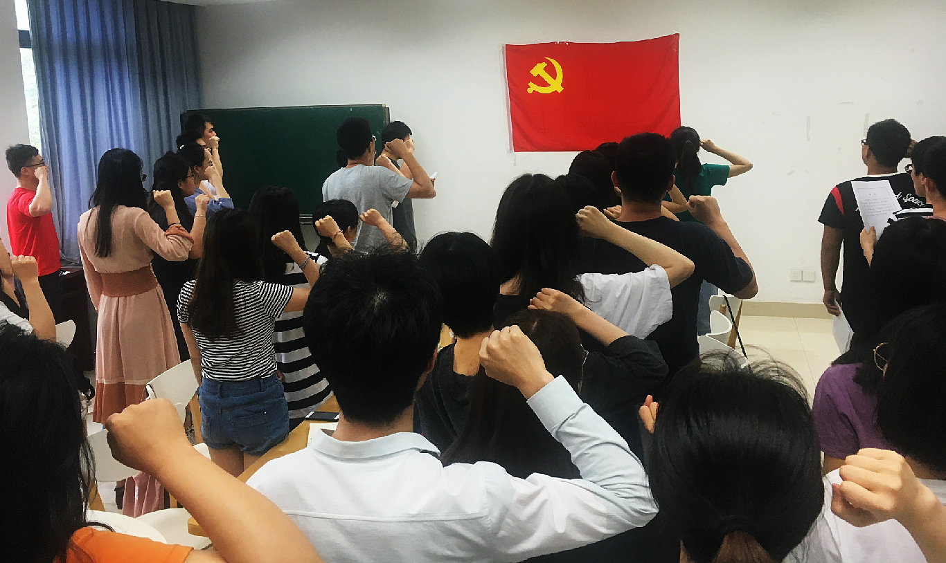 最后,全体党员面向党旗,进行庄严的入党宣誓。无论是对新预备党员,还是对即将离校的毕业生党员,此次会议不是结束,而是又一个新的开始。希望所有的党员同志们在今后的人生道路上,能始终不忘初心,牢记使命,怀揣理想,砥砺前行!