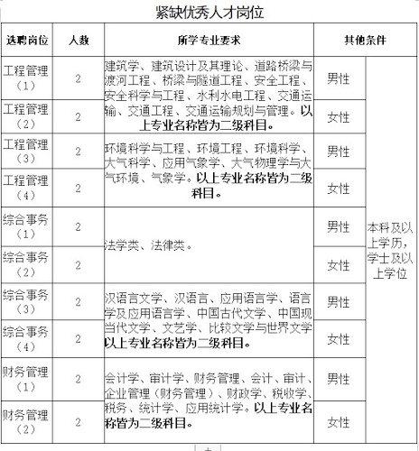 (二)有专业要求的岗位需以最高学历所学专业报考。选聘计划中所涉及的专业类别,参考教育部发布的普通高等学校本科专业目录和研究生学科、专业目录。