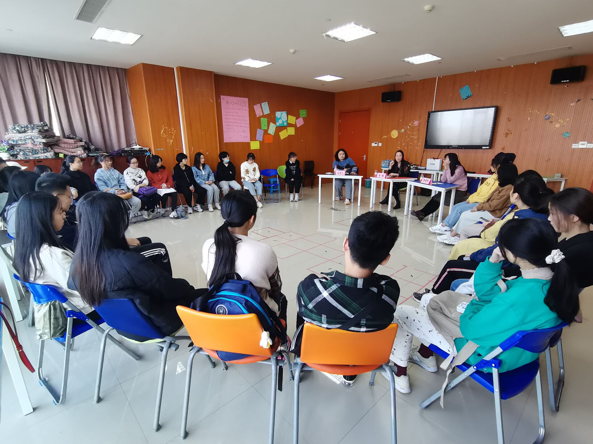 讲座的最后,陈晓玲老师给同学们分享了一个身边发生的案例,告诉同学们在意识到自己心理可能存在问题时应该第一时间与辅导员老师沟通、寻求帮助,从而能够及时就医,有效应对抑郁。