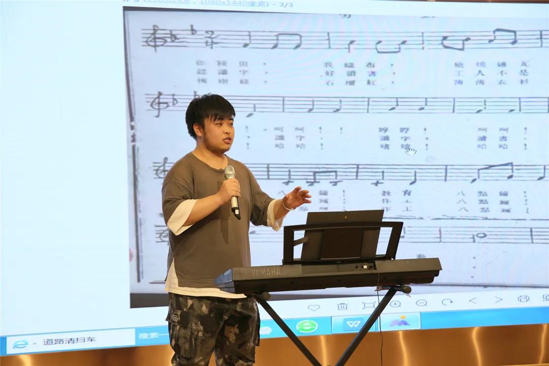 “你种田,我织布,他烧砖瓦盖房屋……”孩子们在杭师大学生带领下,合着乐谱,唱起了《劳动歌》。这是一首反映革命先辈对劳动人民的热爱,尊重劳动的朴素情怀,契合红色主题,积极向上,催人奋进。作者是中国现代著名诗人刘大白。