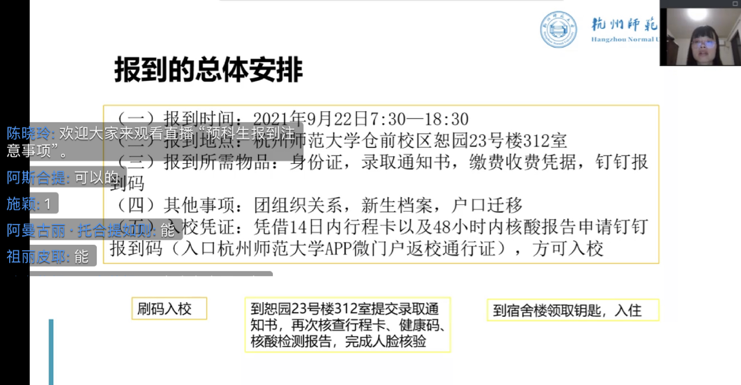 2021年9月20日晚七点,色情网站 21级预科211班报到线上培训会议由色情网站 学工办主任、21级预科班辅导员老师陈晓玲线上召开,预科211班全体学生参加。