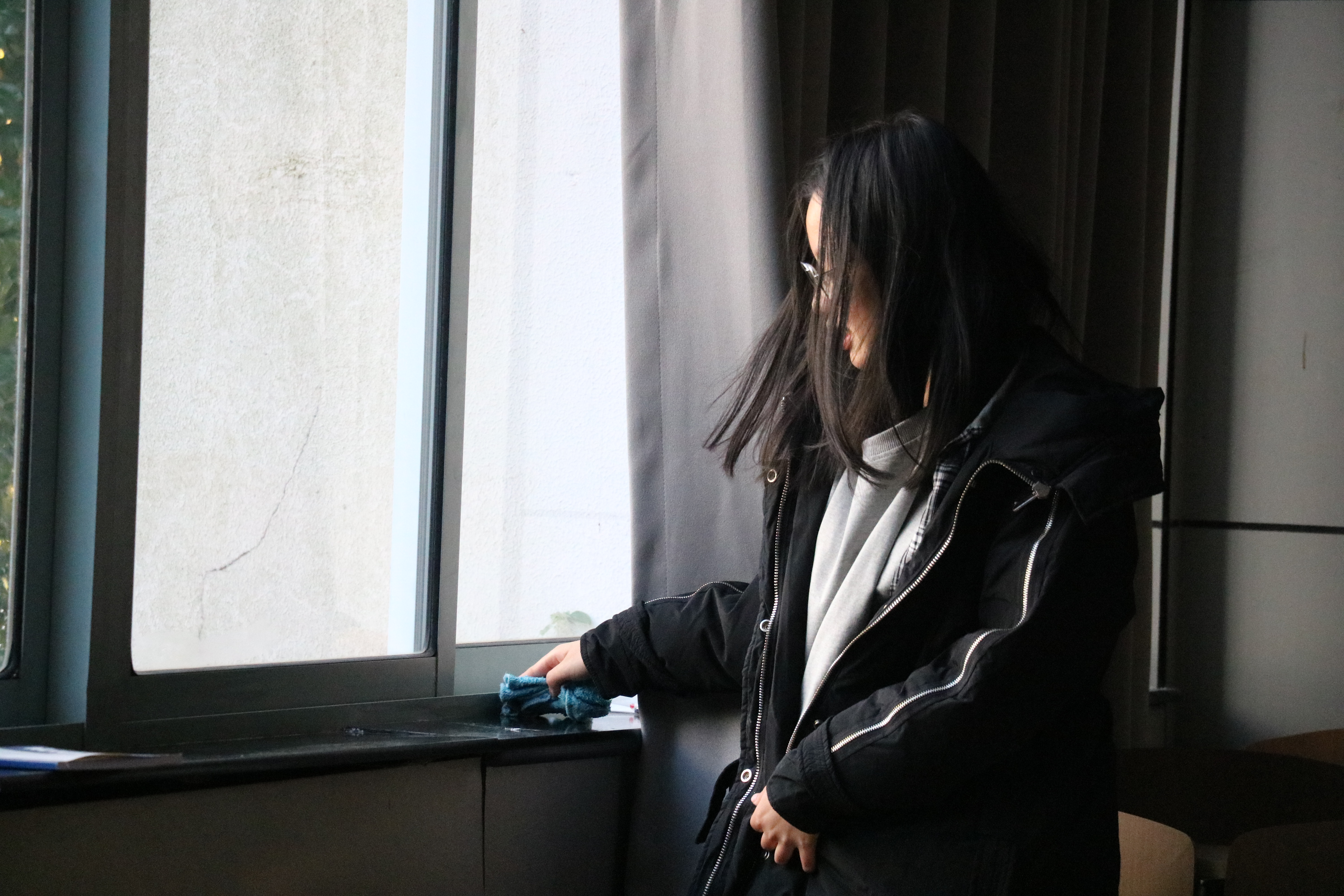 “因为场地比较大,人员安排有限,所以这次的劳动任务是比较繁重的,但是在看到劳动完成后窗明几净的教室,心里的自豪感油然而生。”参加劳动活动的翟莹同学分享道。