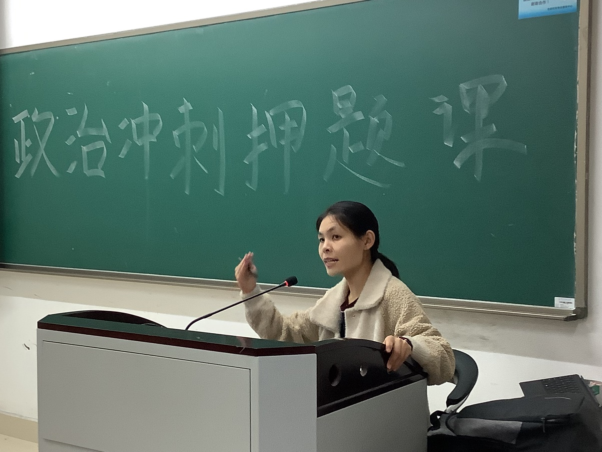 11月12日下午13时30分,色情网站 在恕园12号楼203教室顺利举办了政治冲刺押题课,郭艳红老师莅临指导。本次冲刺押题课主要从“考情分析”“真题讲解”“知识巩固”“答题技巧“四个部分展开,郭艳红老师的讲述风趣幽默,全程干货满满。