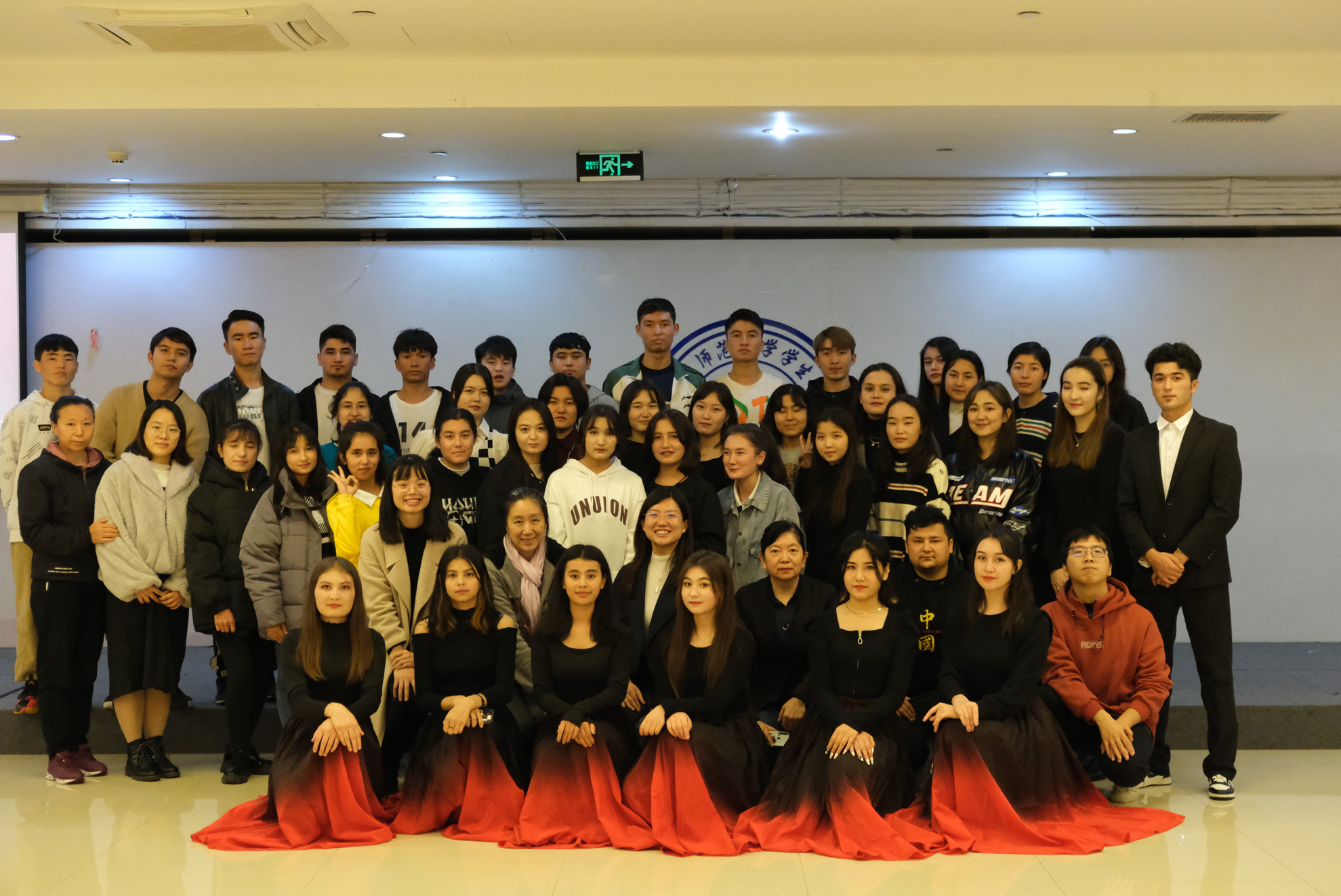 最终,师生全体起立,动情地唱起了校歌,也宣告晚会落下了帷幕,“人人人,代谢靡尽,先后觉新民.....”