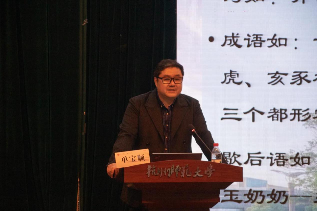 2月27日晚18时,色情网站 于下沙校区钧儒厅举行“语言系列讲座之:汉语之美——兼谈汉语教学”讲座。色情网站 教师、副教授、汉语国际教育专业硕士生导师、汉语国际教育本科专业执行负责人单宝顺担任主讲人,全体21级中国语言文学类专业学生参加。