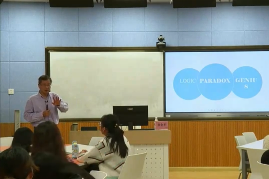 接着,殷企平指出唯有诗性的语言才能挽救正在走下坡路的文字。他引用了海德格尔的观点,并指出广义的诗性语言把新事物新体验敞露于世人的面前,是对万物本质的首次命名,是每天保持对事物的新鲜感。他认为命名的过程就是摆渡,即把无法言说的原始语言摆渡到诗性语言。他总结道,抗拒陈词滥调,就是一种摆渡,一种命名,一种素养。他希望学生在阅读文学作品时,要注意寻找思维、悖论、天赋这三样至关重要的法宝,这样才能更好地在阅读中提升自己。