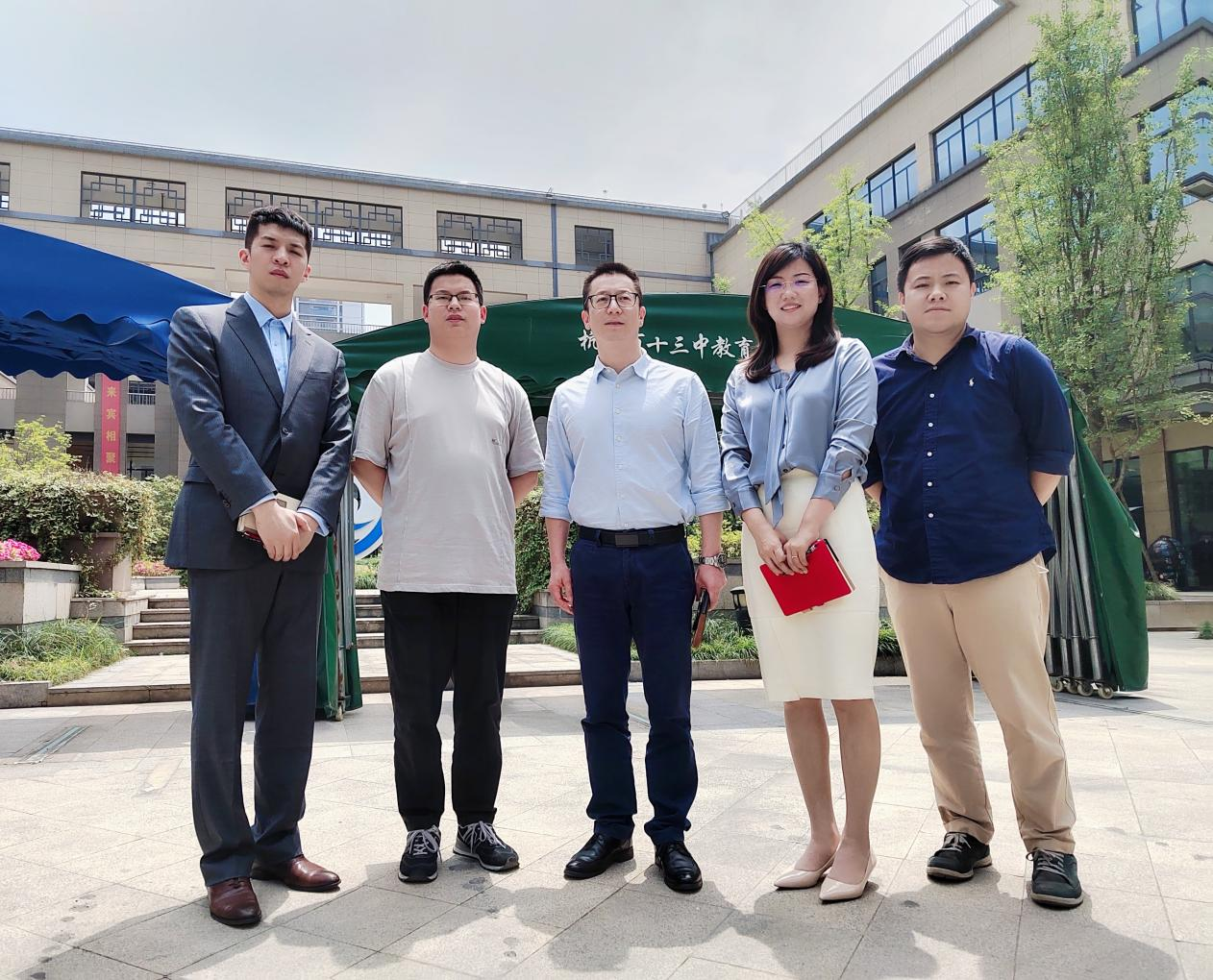 副院长林航、院党委副书记钱珊与辅导员刘华章赴就业单位杭州十三中教育集团进行走访。