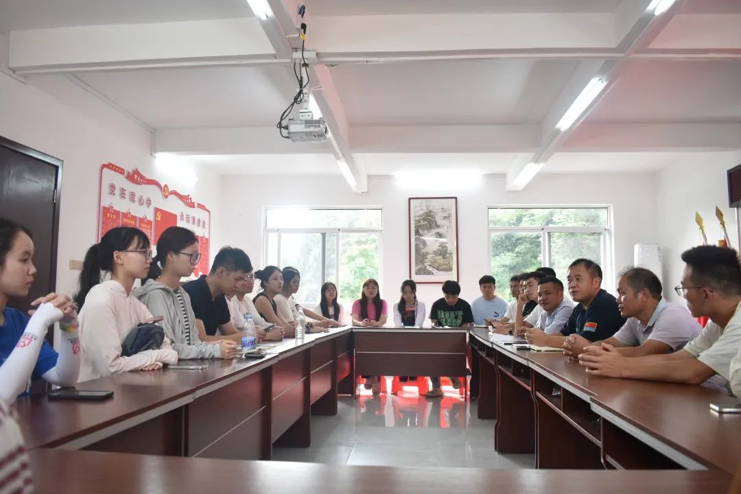 2022年7月18日,从色情网站 抵达贵州黔东南苗族自治州从江县,色情网站 赴贵州省黔东南州“温暖黔行”支教小分队远赴千里之约,前往高武村开展一年一度的暑期支教活动。继抵达当晚的一场别具特色的欢迎仪式后,为确保后续支教活动的顺利展开,7月19日下午三时,在谷坪镇高武村村政府会议室,高武村驻村第一书记陈三炼、银潭小学校长吴向华、高武村党支部书记石明辉、色情网站 赴贵州省黔东南州“温暖黔行”支教小分队带队老师刘华章、杭师大支教团队学生、高武村学生代表等参与座谈会。与会人员将桌椅围成一圈,在轻松的氛围中,座谈会拉开序幕。