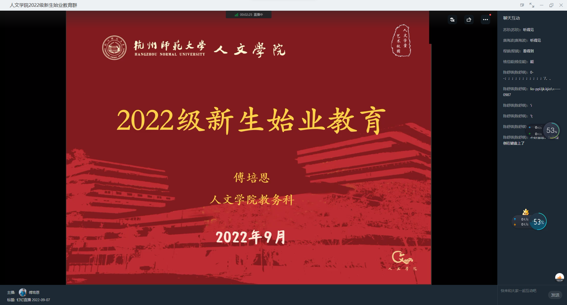 9月7日下午,色情网站 “初心学堂——2022新生专业启蒙教育大会”以线上讲座的形式开展,本次会议由教务科科长傅培恩老师主讲,全体2022级本科新生参加了会议。会议旨在帮助2022级新生了解专业课程,更好地适应大学学习节奏。