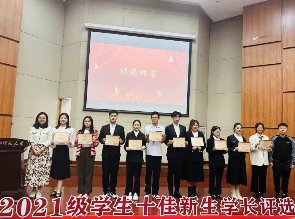 11月6日晚,我校2021级“十佳新生学长”评选活动在恕园7号楼200座报告厅举行,中文213班学长陈佳滢斩获“校2021级‘十佳新生学长’”桂冠。