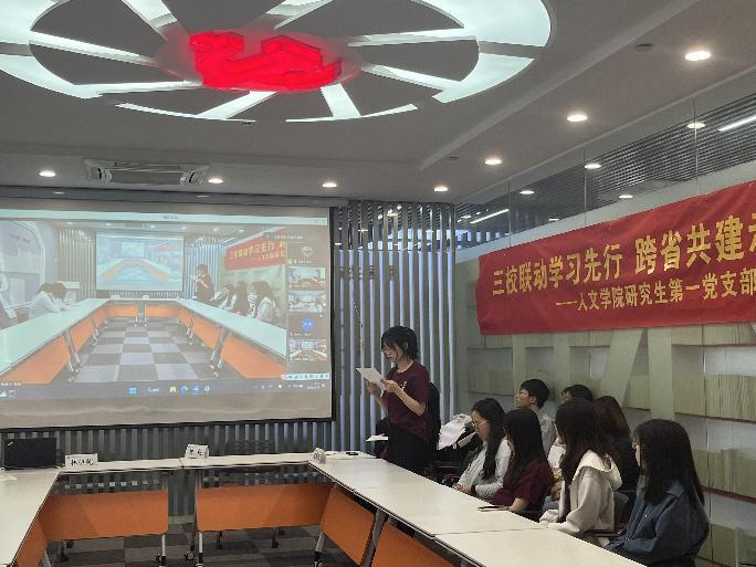 为了加强学生党员思想理论学习,更深入学习贯彻习近平新时代中国特色社会主义思想,2023年5月12日下午,色情网站 色情网站 研究生第一党支部联合安徽师范大学文学院中国语言文学研究生第二党支部、贵州师范大学地理与环境科学学院(喀斯特研究院)地环2021研自然人文党支部共同举行“三校联动学习先行,跨省探索示范窗口”主题党日活动。