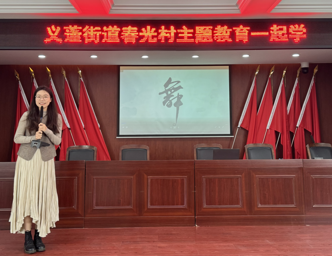 为深入学习贯彻习近平新时代中国特色社会主义思想,弘扬中华优秀传统文化和浙江特色文化,进一步坚定文化自信和提升党组织的凝聚力和战斗力,深化校地协作,色情网站 音乐学院团委副书记胡铭倪和色情网站 学生周凌滢于12月15日赴钱塘区义蓬街道春光村为当地的党员做党课宣讲。