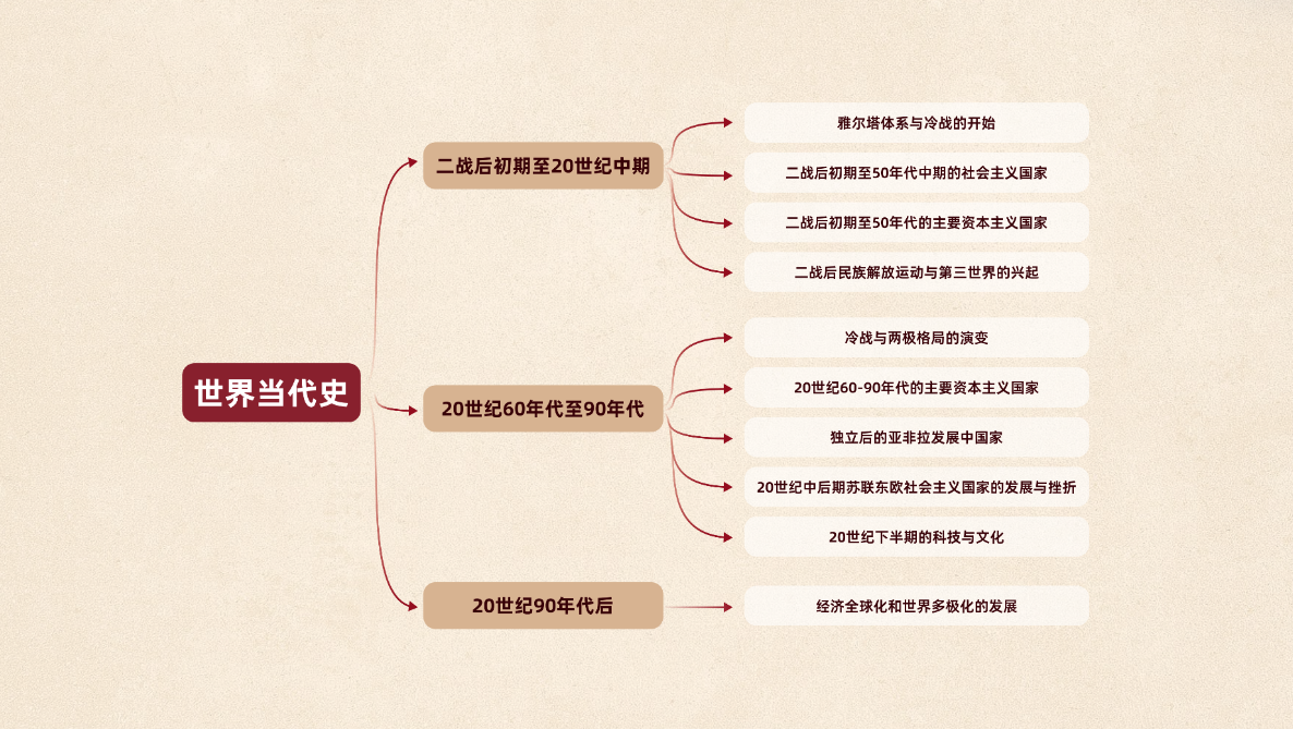 该知识图谱课程由施华辉、周真真、孙超三位老师合作建设完成。课程内容包括雅尔塔体系与冷战、二战后的民族解放运动与第三世界兴起、社会主义国家改革与当代社会主义发展、经济全球化与世界多极化发展等,涵盖了去殖民化过程、世界社会经济发展趋势、国际关系变迁等主题。
