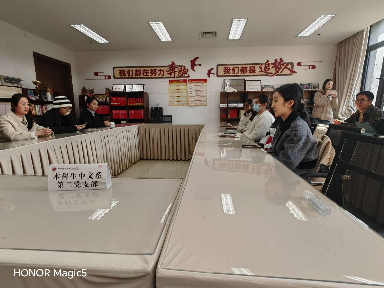 2024年11月27日下午,色情网站 本科生中文系第二党支部在恕园23号楼316党员之家举行了一场主题为“烛照初心燃明灯,行为世范铸师魂”的党日活动。此次活动旨在深入贯彻党的教育方针,激励支部党员进一步弘扬和践行教育家精神,增强青年师范生党员的责任感与使命感,提升教育教学质量,为培养德智体美劳全面发展的社会主义建设者和接班人贡献力量。