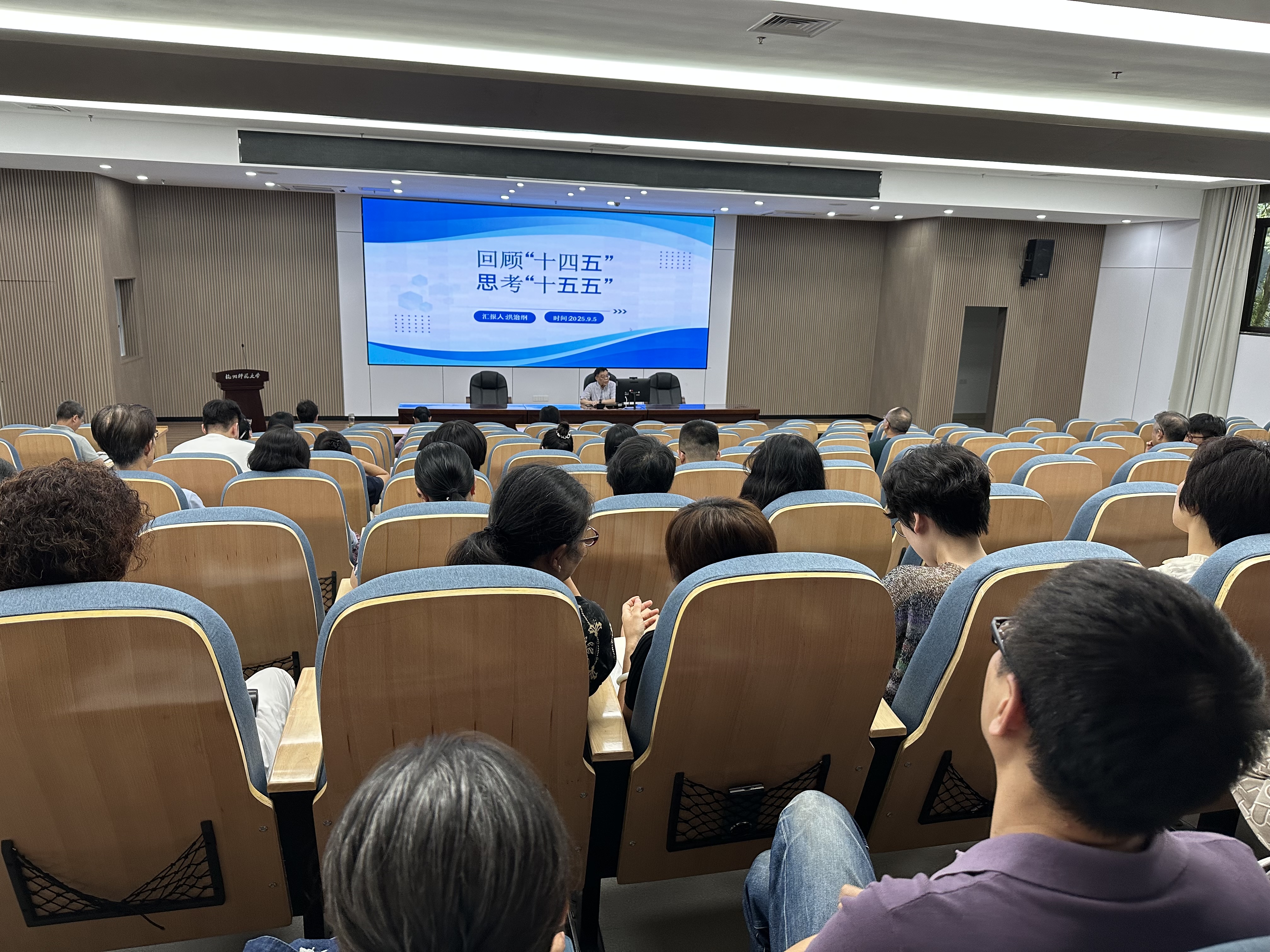学院副院长刘正平、林航,党委副书记卢晚秋就学科建设、教学、学生工作向全体教职工介绍了整体情况。