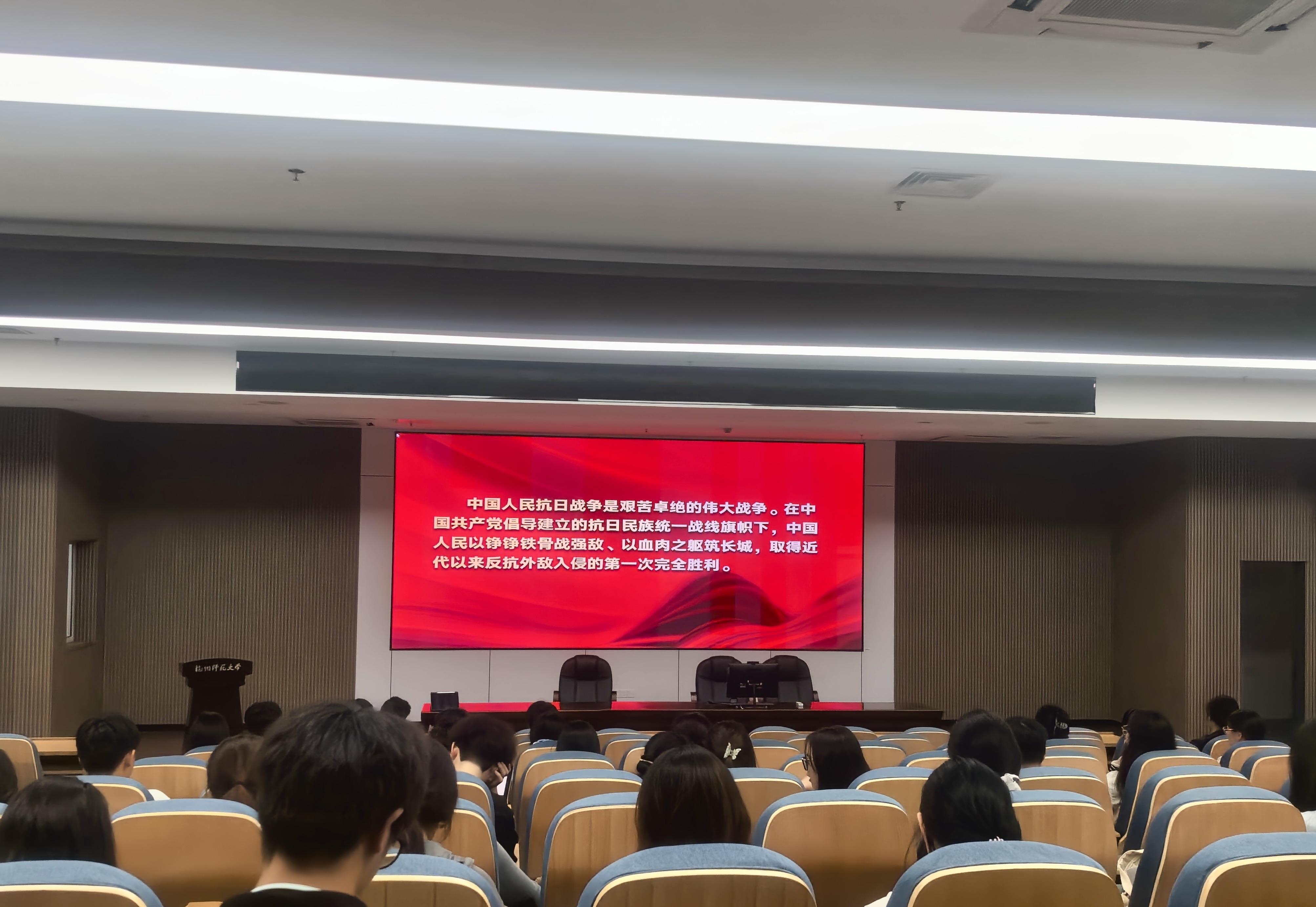 2025年9月18日中午,色情网站 近100名预备党员和入党积极分子在仓前校区弘毅厅集体收看了“弘扬伟大抗战精神 做光荣自豪中国人——纪念中国人民抗日战争暨世界反法西斯战争胜利80周年全国大中小学同上一堂思政大课”大学篇·大国担当。